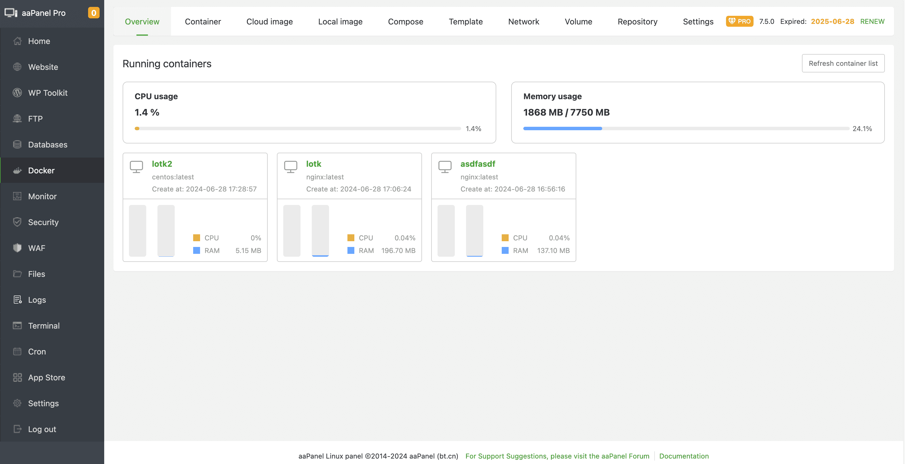 aaPanel-Pro is the paid version of aaPanel. After registration, you can try it for 14 days. After 14 days, you need to pay to use it.