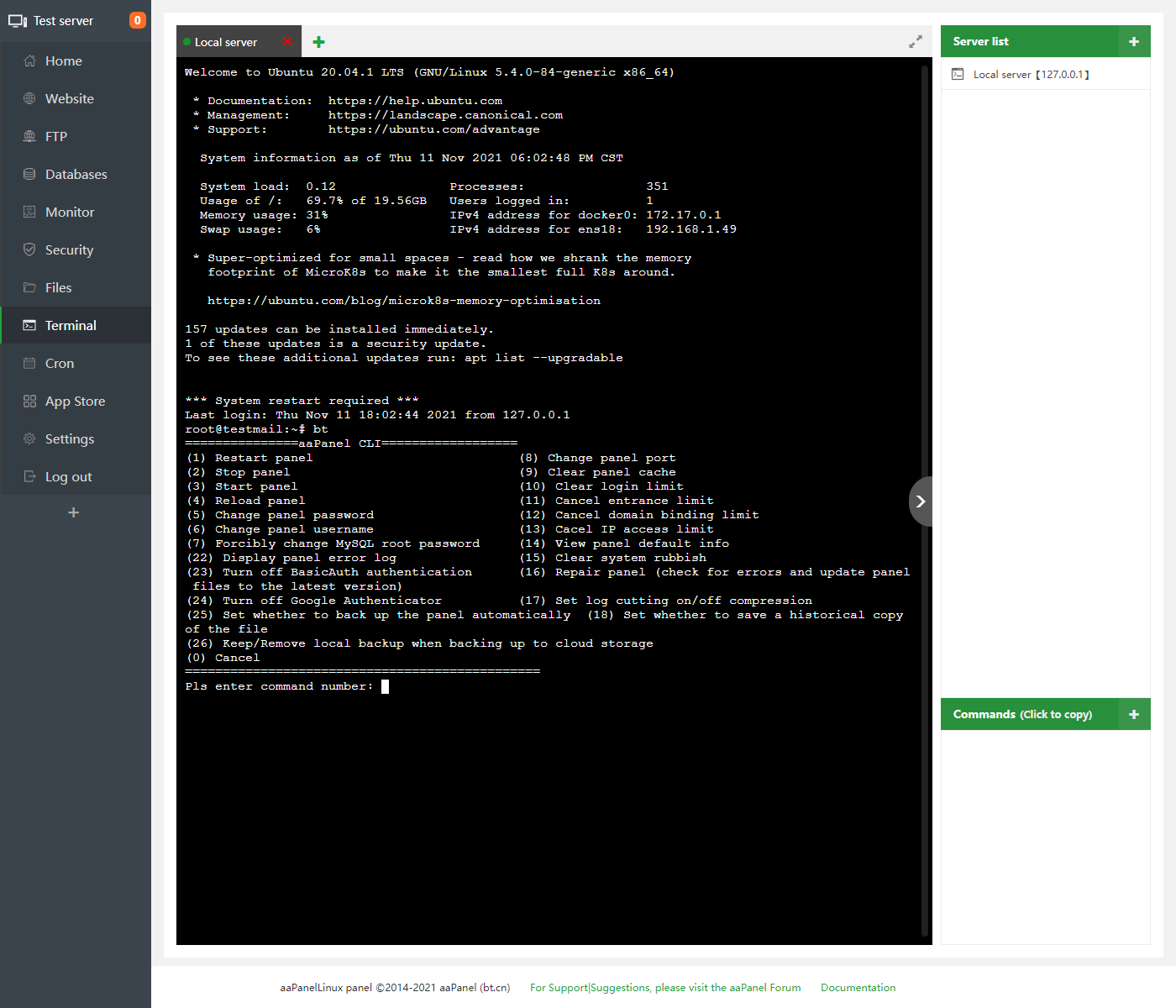 SSH terminal management, you can add and bind multiple servers and add common commands.
